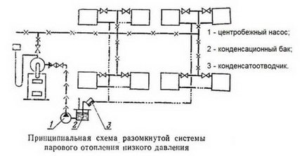 На фигурата е показана диаграма на парна отоплителна система с отворен контур