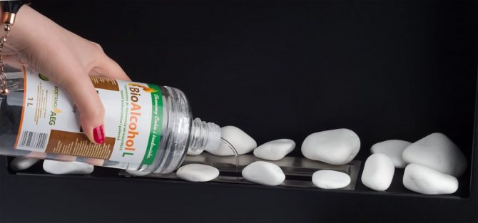 - Биоетанол, денатуриран алкохол с някои добавки за реалистичен огън.