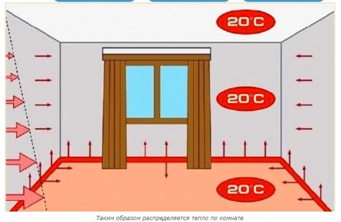 - Равномерно отопление на помещението. Въздухът в стаите има еднаква температура както на пода, така и на тавана, с единична разлика от само 1 градус.