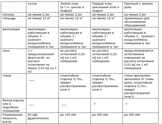 Нежелателно е да се организира котелно помещение в мазето. Тъй като природният газ е много по-тежък от въздуха, в случай на изтичане той ще започне да се натрупва, образувайки експлозивна смес, когато се комбинира с атмосферен кислород.