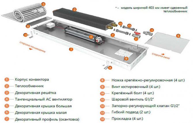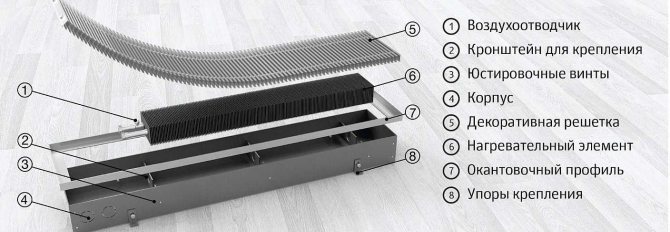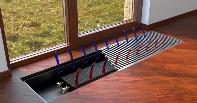 Уреди като подови конвектори се основават на прости закони на физиката. Студеният въздух, потъвайки в долната част на помещението, свободно прониква през специална решетка към нагревателния елемент. Там той се загрява и издига нагоре, като по този начин затопля цялата стая. Топлият въздух циркулира непрекъснато, като по този начин осигурява постоянна топлина в помещението.