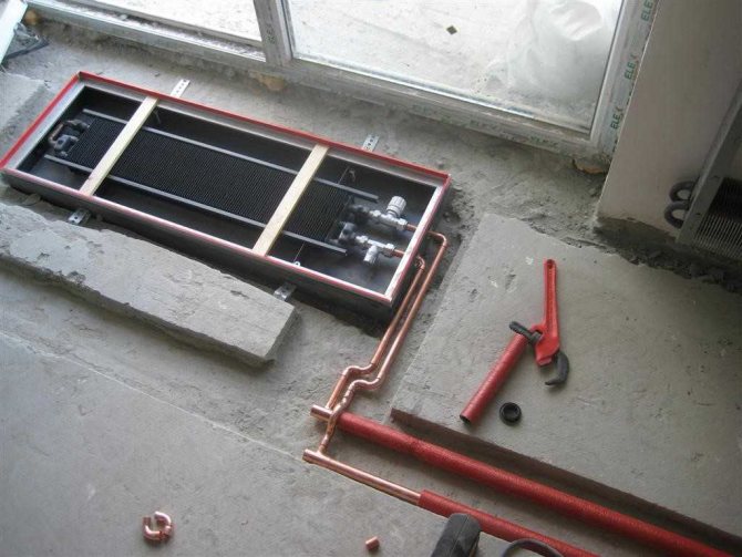 Процес на инсталиране разделени на няколко етапа: полагане на изолация, полагане на тръби, бетониране и полагане на подови настилки.