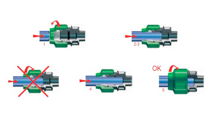 Важно е да се избягва деформация на уплътнителната яка на пръстена. Това може да причини изтичане в областта на ставата. Допуска се кривина на оста, но тя не трябва да надвишава дебелината на стената на тръбата.