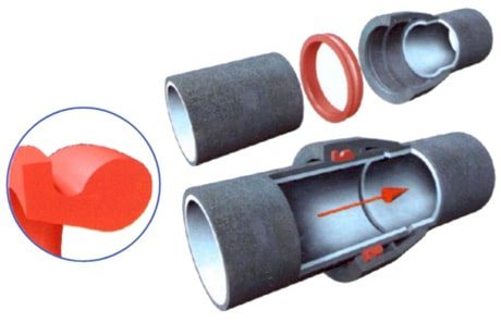 Това е един от начините за свързване на пластмасови тръби. Гуменият пръстен осигурява херметичност. Той е затегнат между правия ръб на тръбата и стените на гнездото.