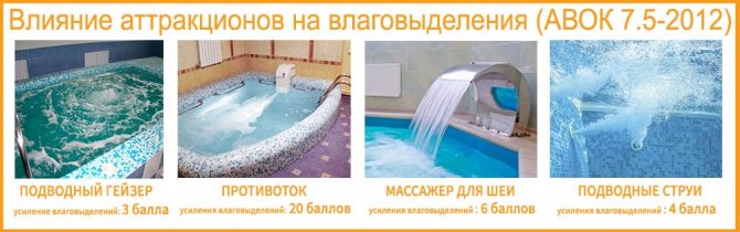 След това трябва да обърнете внимание и на скоростта на въздуха. Така че, за да се избегне дискомфорт, течение и засилване на изпарението на влагата, в района, където се намират къпащите се и над водната повърхност, скоростта на въздуха трябва да бъде на ниво 0,15 ÷ 0,20 m / s