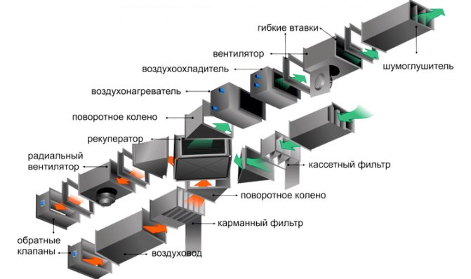 Основните елементи на захранващата вентилация