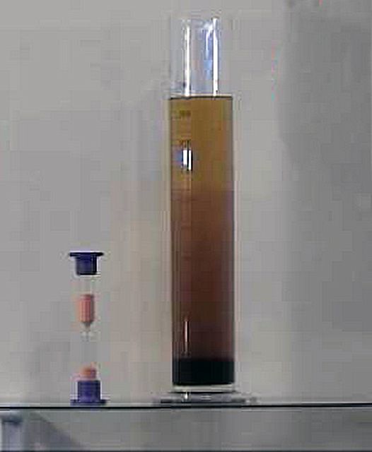 Обикновено, в зависимост от обема и качеството на първоначалните продукти, процесът може да отнеме от 1 до 10 часа. В резултат на това сместа трябва да даде изразена стратификация. В горната част на реактора (съда, в който е протичал процесът) остава лека фракция - всъщност самият биодизел. На дъното има изразена плътна маса - глицеринов компонент.