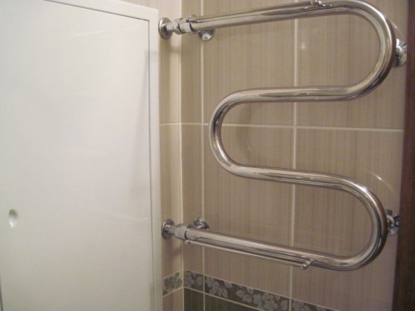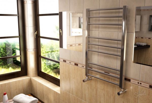 Забележка! Отопляемата релса за кърпи е извита метална тръба, която е прикрепена към стената на банята. Металът е добър проводник, така че пренася топлината добре в околното пространство. Благодарение на това става по-топло и по-удобно в банята.