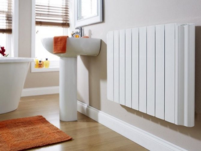 Алуминиева батерия в банята би изглеждала перфектно! Компактни, леки и много красиви радиатори са лесни за инсталиране и могат лесно да бъдат окачени на всякаква височина. Но способността за корозия отвътре е лошо съчетана с връзване при централизирано отопление, където водата не винаги е чиста и мека.
