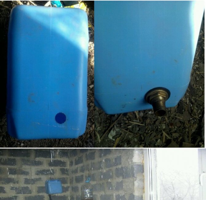 Този контейнер висеше в недовършена стая и ме смути, отдавна исках да го занеса на тавана и изведнъж измислих начин да направя дупка в контейнера и да прикача месингов фитинг, без да изрязвам огромна дупка за ръката за да вмъкнете отвътре. Вземаме контейнер под грунда, взех го за 10 литра, отоплението ми ще бъде достатъчно с резерв: