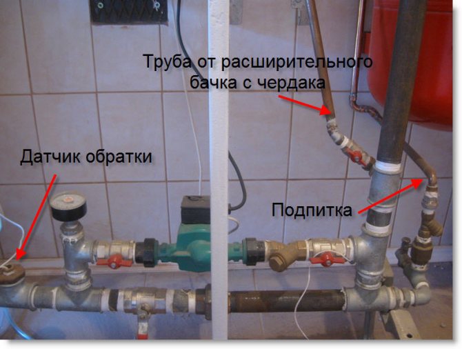Любопитно: за да се опрости стартирането, отдушникът от разширителния резервоар на тавана често се отстранява в мазето. Предната част на водата под налягане от 4 атмосфери с малък диаметър на тръбата перфектно ще измести въздуха надолу.