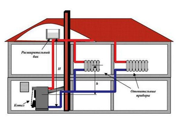 Справка! Естествената циркулация в затворено пространство е възможна само ако има такава определена хидростатична глава (Нst). Колкото по-висока е стойността Нst, толкова по-интензивна е циркулацията на охлаждащата течност.