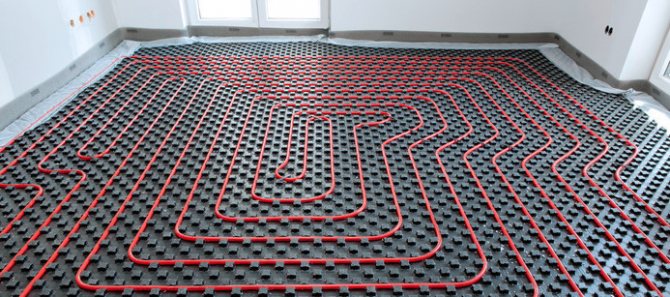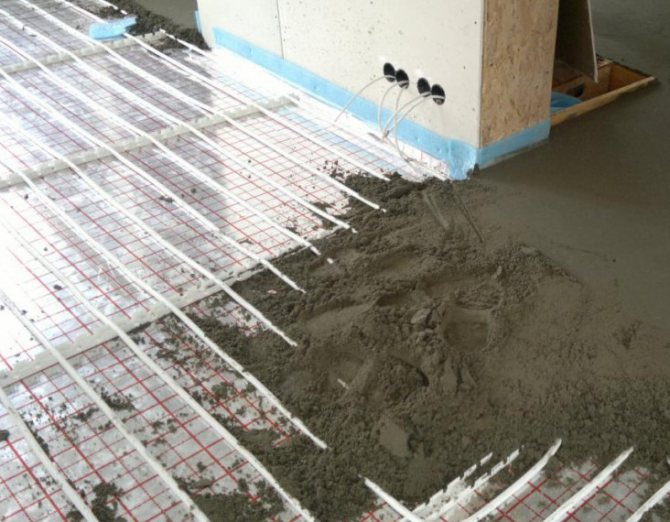 В този случай е необходимо изолационният слой да се допълни с допълнителни панели. Равномерно нагряване може да се постигне със серпентиново нагревателно устройство. Също така е необходимо да се оставят компенсатори, които позволяват на тръбите да се разширяват при нагряване. Едва след това можете да пристъпите към окончателното изливане на бетонната замазка.