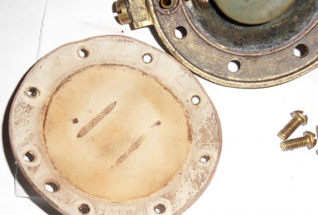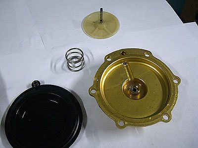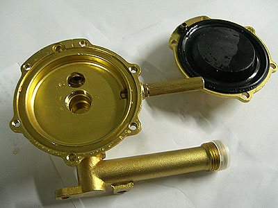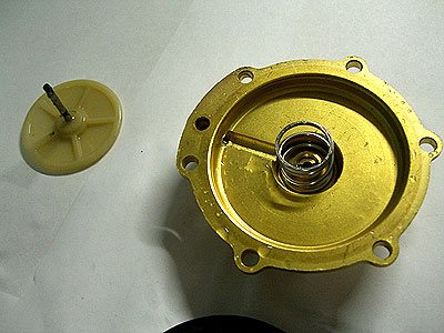 Отстраненият регулатор на налягането ще трябва да бъде разглобен, за да достигне гумената (силиконова) мембрана. Разглобената част прилича на чиния.
