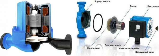 Основата на всяко устройство е неговият дизайн. Циркулационната помпа не е много сложно устройство. Състои се от няколко елемента: