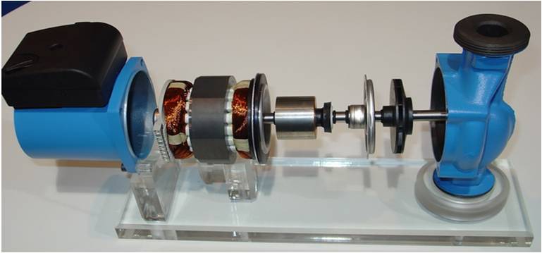Между другото, не забравяйте за наличието на помпа, която в зависимост от всеки тип конструкция, в която е инсталирана, може да бъде различна. Например, помислете за вариант на устройството с ротор: