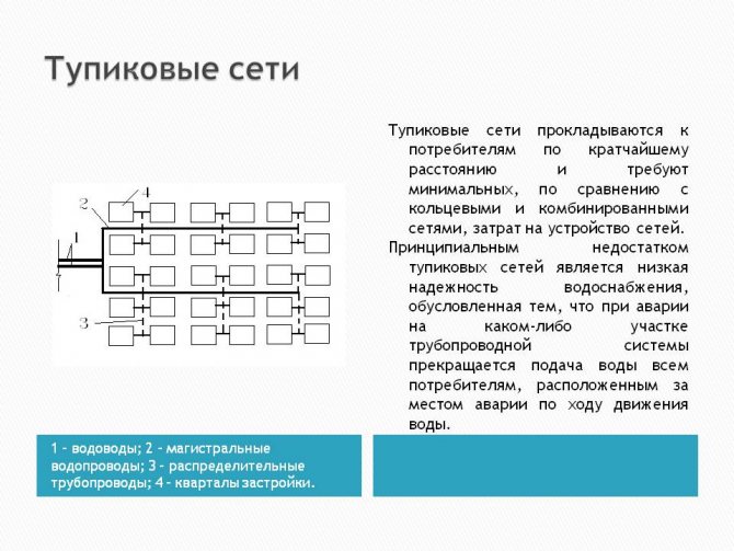 Схема в задънена улица - при тази схема топлата вода не циркулира в системата и за да се получи вода с необходимата температура, тя трябва да се зауства през крана. Тоест отваряте крана, изчаквате охладената вода да изтече, след което горещата вода се излива.