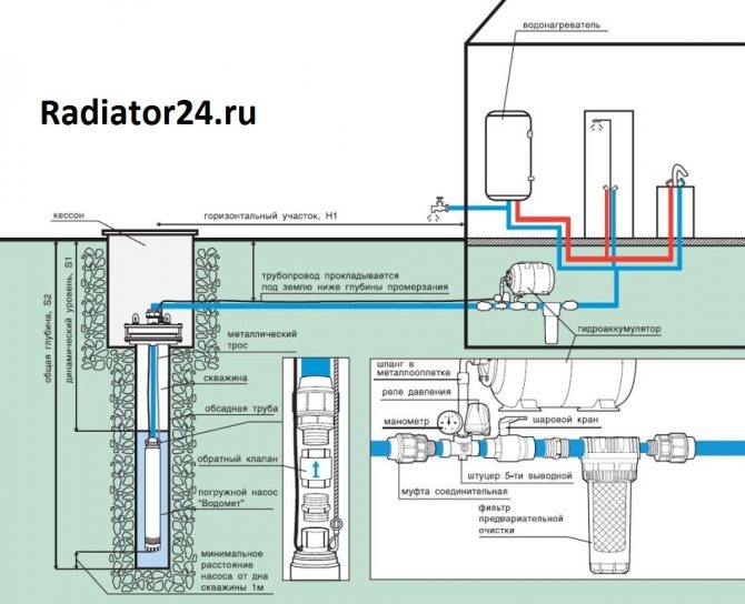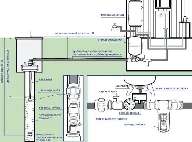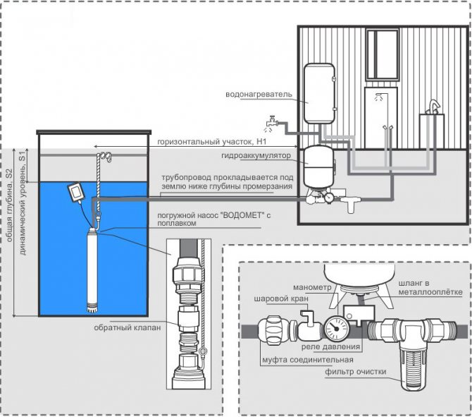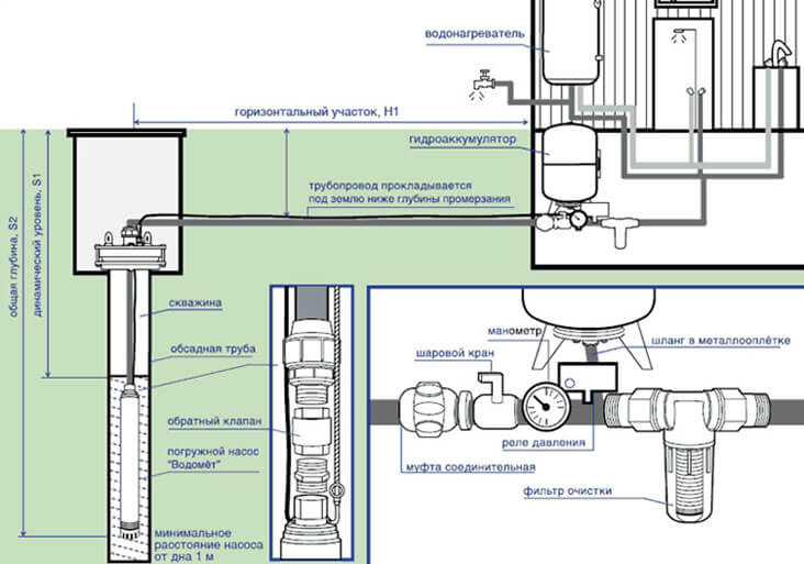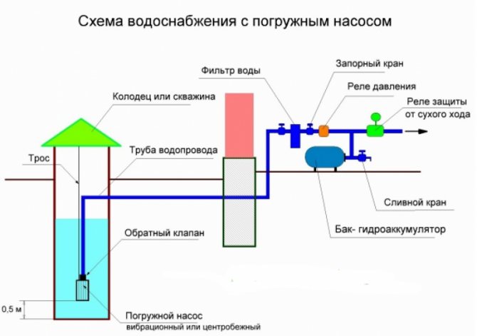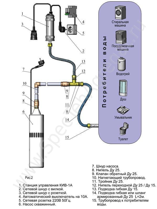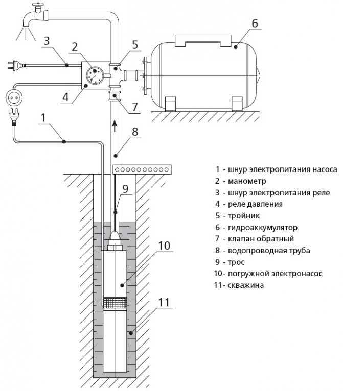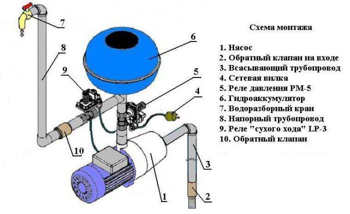Самоустройството на водоснабдителната система трябва да се извърши, при условие че капитанът знае как работят основните му компоненти. Помпата, която е потопена в кладенец, създава водно налягане, когато е под напрежение. Кабелът на помпата може да бъде свързан директно към електрическата мрежа, тогава не се изисква използването на допълнителни устройства.