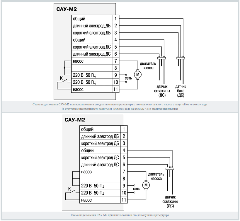 Работата на съоръжения под налягане със следната схема за свързване на потопяема сондажна помпа към автоматизация: