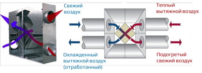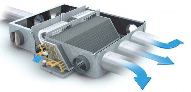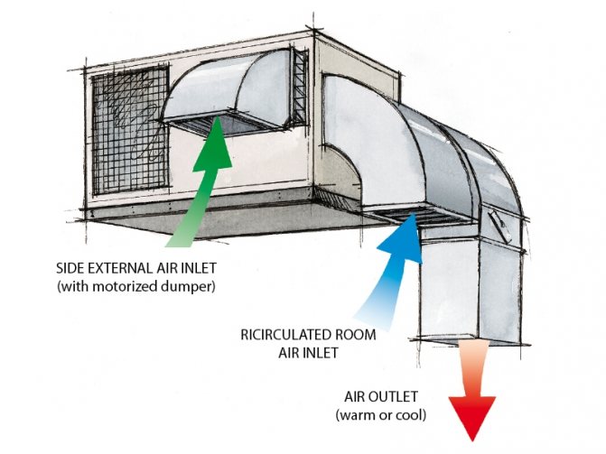Студеният външен въздух се смесва с топъл въздух, взет от стаята, нагрява се до необходимата температура и след това се подава в стаята