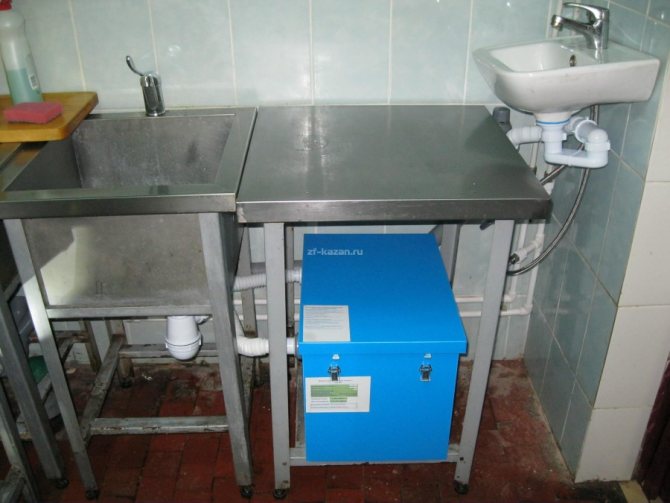 Внимание! Мазнините са лесно запалими, изгарят дълго време и трудно се гасят. Ако печката е твърде близо до мивката, тогава е по-добре да инсталирате капана за грес в друга стая.