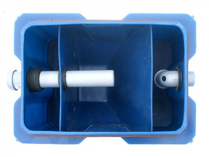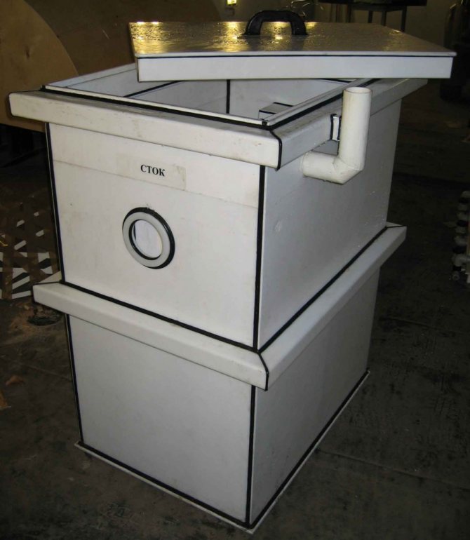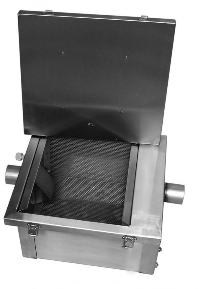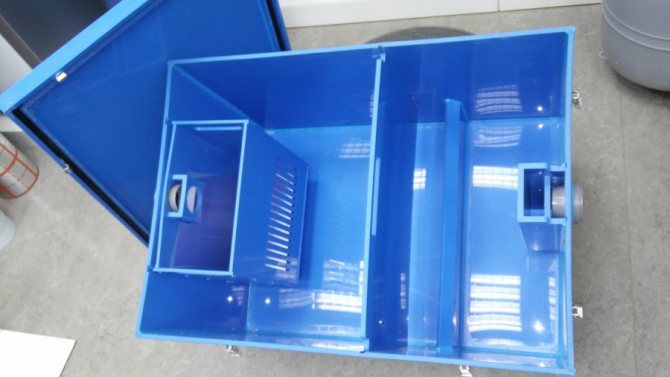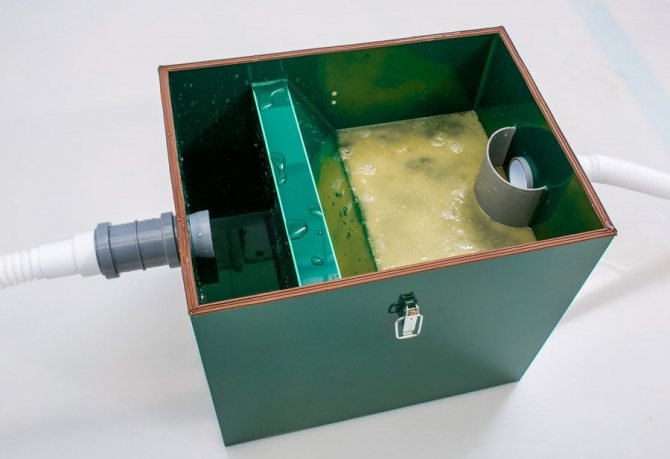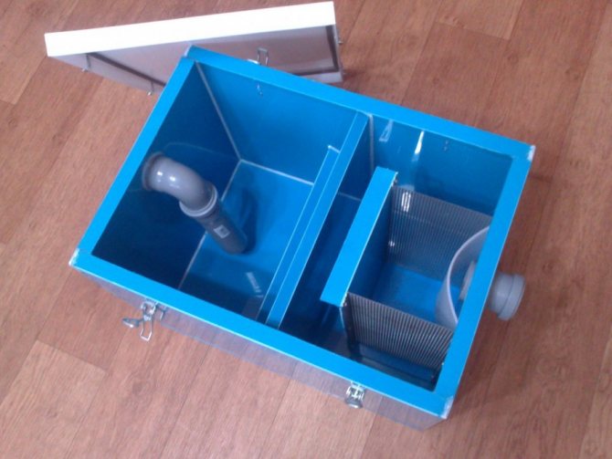 По време на производството на битов капан за мазнини със собствените си ръце е позволено да поставяте прегради не строго вертикално, но и в диагонална равнина, използвайки дистанционни елементи (дълги болтове).