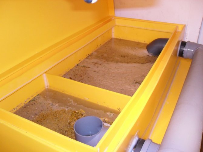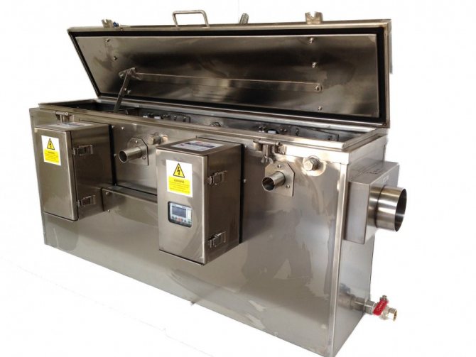 Тъй като мазнините и маслените съединения са по-леки от водата, те попадат на нейната повърхност. Оттам те се пренасочват към картер, който редовно се почиства.