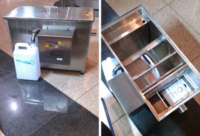 Има два варианта за инсталиране на капани за мазнини - на закрито или на открито. Производителите на уреди често избират определена „специализация“ и правят устройства от един и същи тип - за монтаж вътре или извън сградата.
