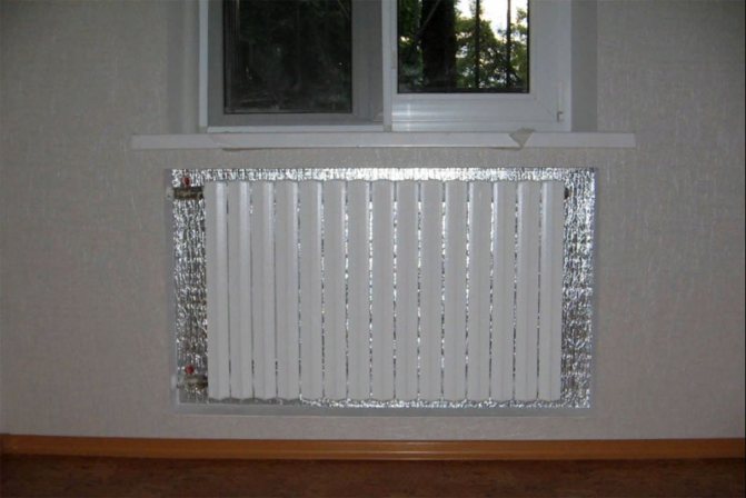 Устройството на топлинния щит може да се извърши с помощта на специален топлоизолационен материал, поставен между стената и отоплителния радиатор.