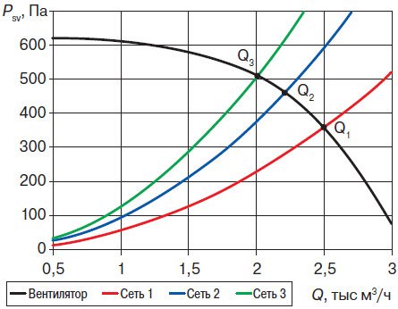 - общата глава на вентилатора трябва да бъде равна на загубата на налягане във вентилационната мрежа.