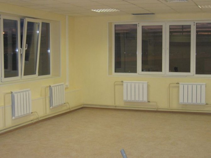 След инсталирането на котела можете започнете да окачвате радиатори... Те обикновено са фиксирани под прозорците. В същото време те се опитват да се уверят, че разстоянието от тях до пода е най-малко 7 см, до перваза на прозореца - 8 см. Между стената и радиатора трябва да има поне 3 см свободно пространство. Фиксирайте радиаторите към стената със скоби.