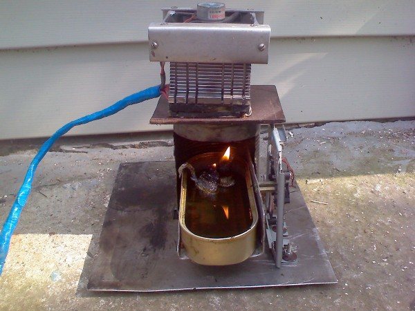 Обикновена домакинска печка на твърдо гориво (направена според типа на печката "Burzhayka"), оборудвана с термоелектрически генератор на Пелтие.