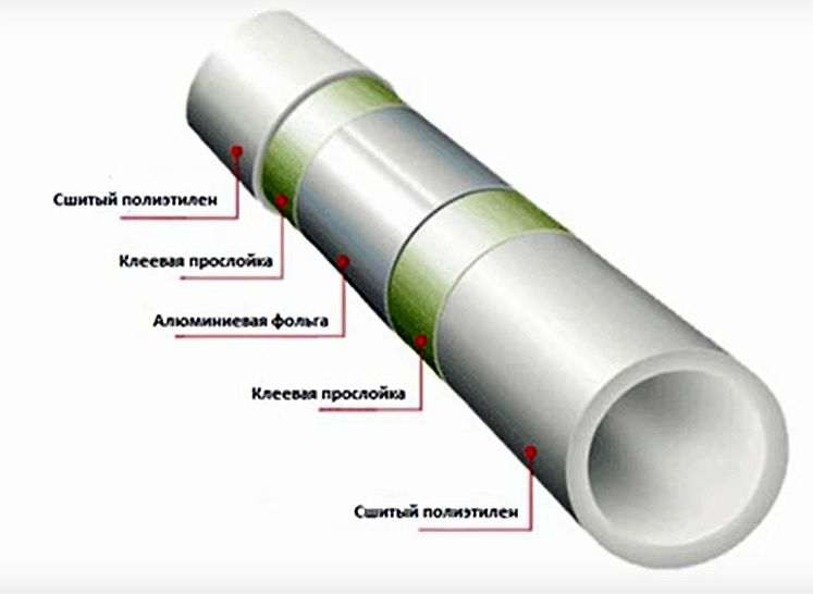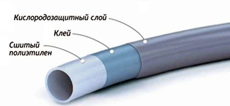 Това е комбиниран тип тръби. Пластмасовият слой е запълнен с метално фолио. Тръбата се оказва доста гъвкава (минималният завой е 8 радиуса) и не позволява на кислорода да премине много. Но: