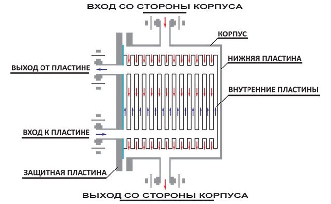 Най-често срещаният е плочата топлообменник. Състои се от плочи елементи с оригинална щампована конфигурация.Тези елементи са успоредни един на друг и в устройството са създадени две вериги: едната отделя топлинна енергия, другата печели. Външните структурни елементи са отделени от тези части, които провеждат топлина. Това означава, че практически не се губи енергия и не е нужно да се притеснявате, че някой от вашето семейство ще изгори, ако случайно докосне топлообменника. Плочковите топлообменници са произведени от висококачествени стомани, които са химически инертни и устойчиви на корозия.