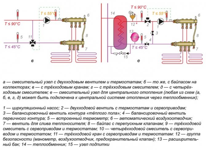 При наличието на колектор високата температура на подаване няма значение - самият миксер ще го понижи до желаната стойност чрез смесване в студена вода. Съответно, ако се планира воден под без колектор, то охлаждащата течност трябва да се подава при предварително определена температура, от което може да се заключи, че за топъл под без смесителна единица трябва да се монтира отделен котел.