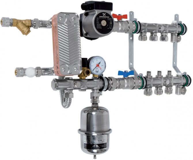 По този начин, ако централното отопление в къщата ви е изключено или изобщо няма централно отопление, това по никакъв начин няма да повлияе на температурата на пода. Но си струва да се има предвид, че ще ви е необходим не само топлообменник, но и разширителен резервоар, блок с картер и група за безопасност.