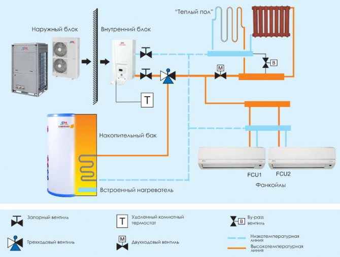 Ако се планира отопление на къща с няколко стаи на различни етажи с термопомпа въздух-въздух, тогава ще е необходимо да се оборудва система от вентилационни канали с принудително впръскване.