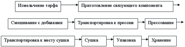 Диаграма на технологичния процес за производство на торфени брикети с добавяне на петролни продукти: