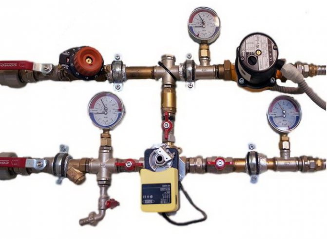 Цялата верига е оборудвана с манометри, топломери, термометри. За по-добро съпротивление на потока, джъмпер се изрязва във връщащата линия под ъгъл от 45 градуса.