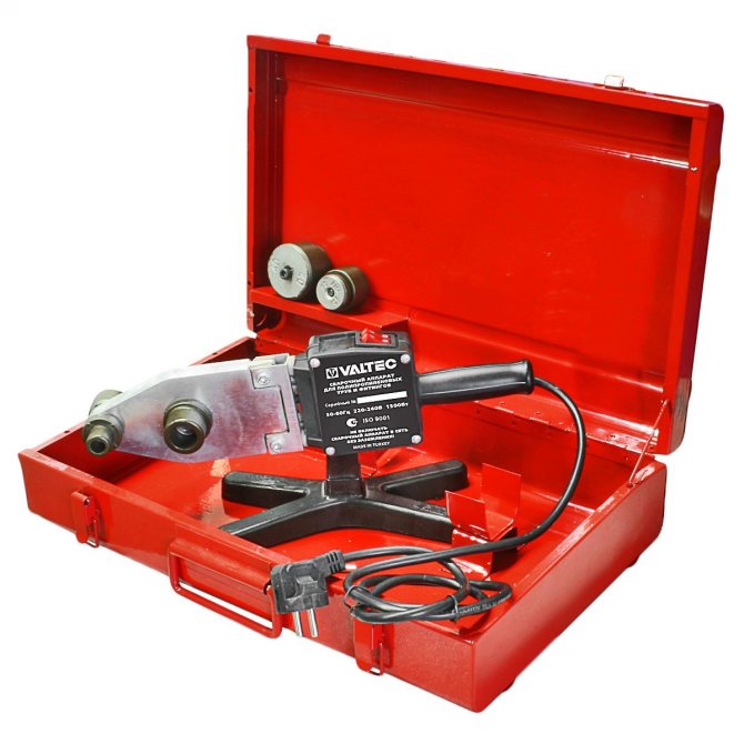 Основната задача на такъв поялник е да поддържа необходимата температура за свързване на полипропиленова тръба с фитинг, а температурата му на нагряване е около 260 градуса.