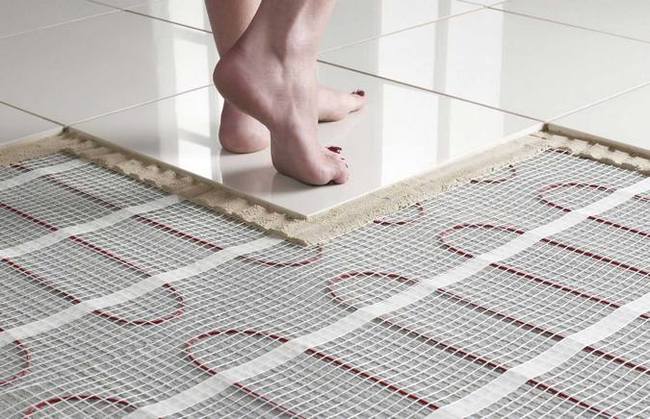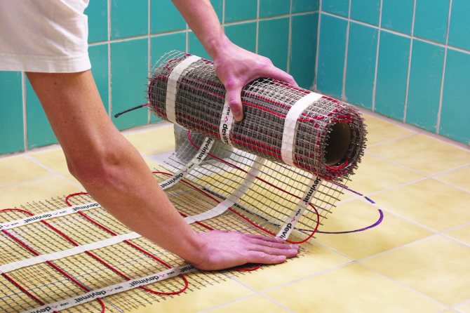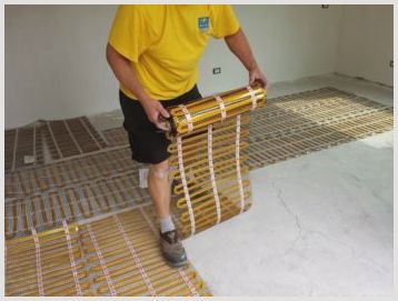 Ако го сравните с полагане на под от кабел, тогава процесът на инсталиране на рогозки ще се извърши от всеки домашен майстор. Постелките лежат без замазка - прилага се лепило. В такава отоплителна система върху решетката се поставя електрически кабел с необходимата стъпка. Благодарение на това остава да отрежете мрежата, да поставите постелките. Основното нещо е да се уверите, че контурите на електрическия кабел не се пресичат помежду си, не се докосват. Недостатъкът на системата е, че тежки предмети (скрин, гардероб) не се поставят върху изтривалките, благодарение на това ще трябва да проектирате предварително подредбата на мебелите в коридора