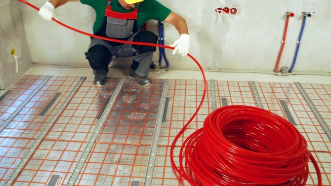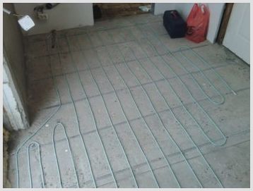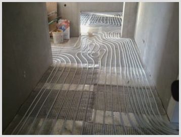 Отоплителната система се състои от електрически кабел (едно-, двужилен), положен под бетонна замазка, и терморегулатор. The отопление