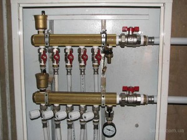 В отоплителните ниши на изходите от главния тръбопровод (щранг) на всеки етаж има колектори - подаване и връщане. От колекторите захранващите и връщащите тръбопроводи под пода се подават индивидуално към всеки радиатор в апартамента.