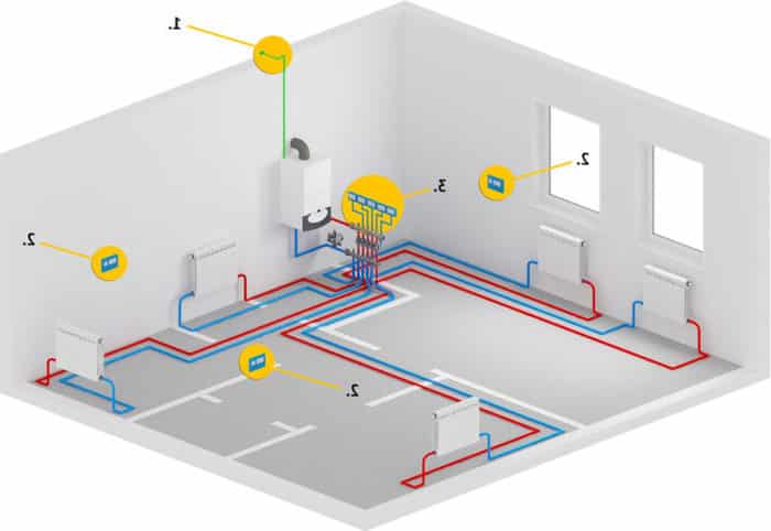 В такава система връзката отива директно към колектора, като по този начин осигурява равномерно разпределение на топлинната енергия по цялата отопляема площ. При тази схема захранващата и връщащата вериги работят независимо една от друга. Отоплителната среда преминава през радиаторите и се връща обратно за следващия отоплителен цикъл. Резултатът е затворена система, чиято работа се регулира автоматично.