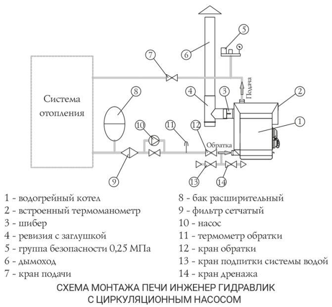 Като цяло отоплителната печка на дърва с водна верига Инженер Gidravlik е пълноценен котел на твърдо гориво, удобен в експлоатация и поддръжка. Предимството на серията е вградената единица тръбни електрически нагреватели (TEN). След като пламъкът изгасне, печката продължава да загрява охлаждащата течност с помощта на електричество.