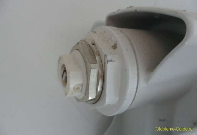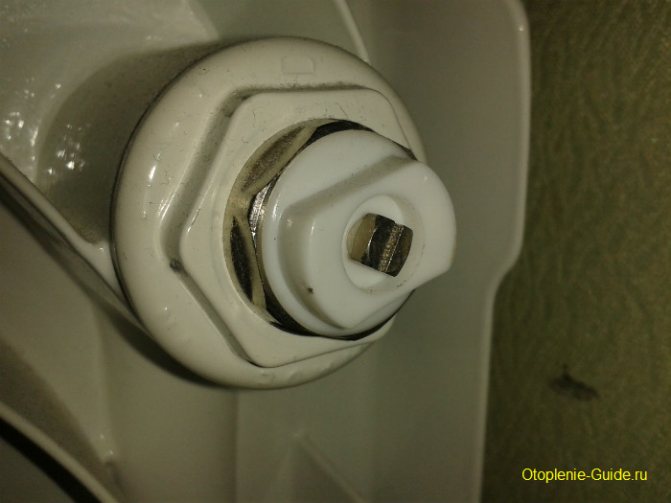 Това е метална шайба с резба, приложена около обиколката. Шайбата има проходен конусен отвор с резба. Диаметърът на отвора е много малък. От една страна, 1-1,5 мм (към радиатора) и около 5 мм от друга.