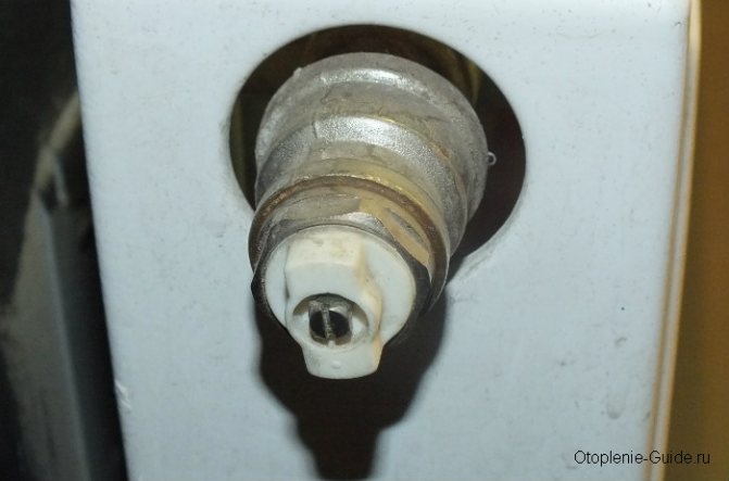 - за да инсталирате кран на Маевски в стар чугунен радиатор, трябва да пробиете отвор в горния щепсел, да отрежете резба, след което да завиете въздушния отвор;