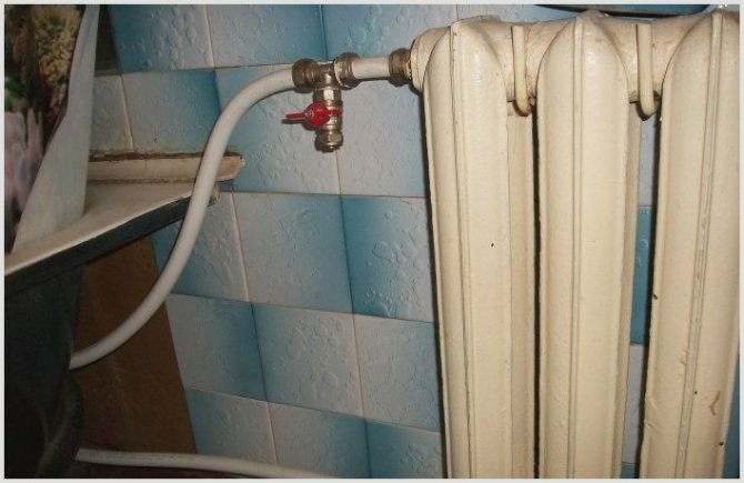 - В еднотръбна система за централно отопление се поставят 2 сферични крана между радиатора и байпаса - на входните и изходните тръби. Това прави възможно да го оставите напълнен, когато източвате охлаждащата течност от системата по време на периода на ремонт на мрежата, изключвате или демонтирате батерията за боядисване, почистване, подмяна.