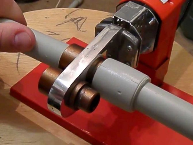 За свързване на тръби и фитинги от полипропилен се използва специална машина за запояване за заваряване на тръби чрез нагряване.