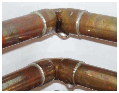 Важно: на справедливост отбелязваме, че има и запояване на медни тръби с припои с високо съдържание на сребро.Такива фуги са много по-надеждни, но спойката е скъпа, плюс не всеки майстор може да работи с тях.